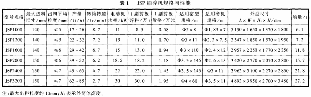 JSP細(xì)碎機(jī)規(guī)格與性能